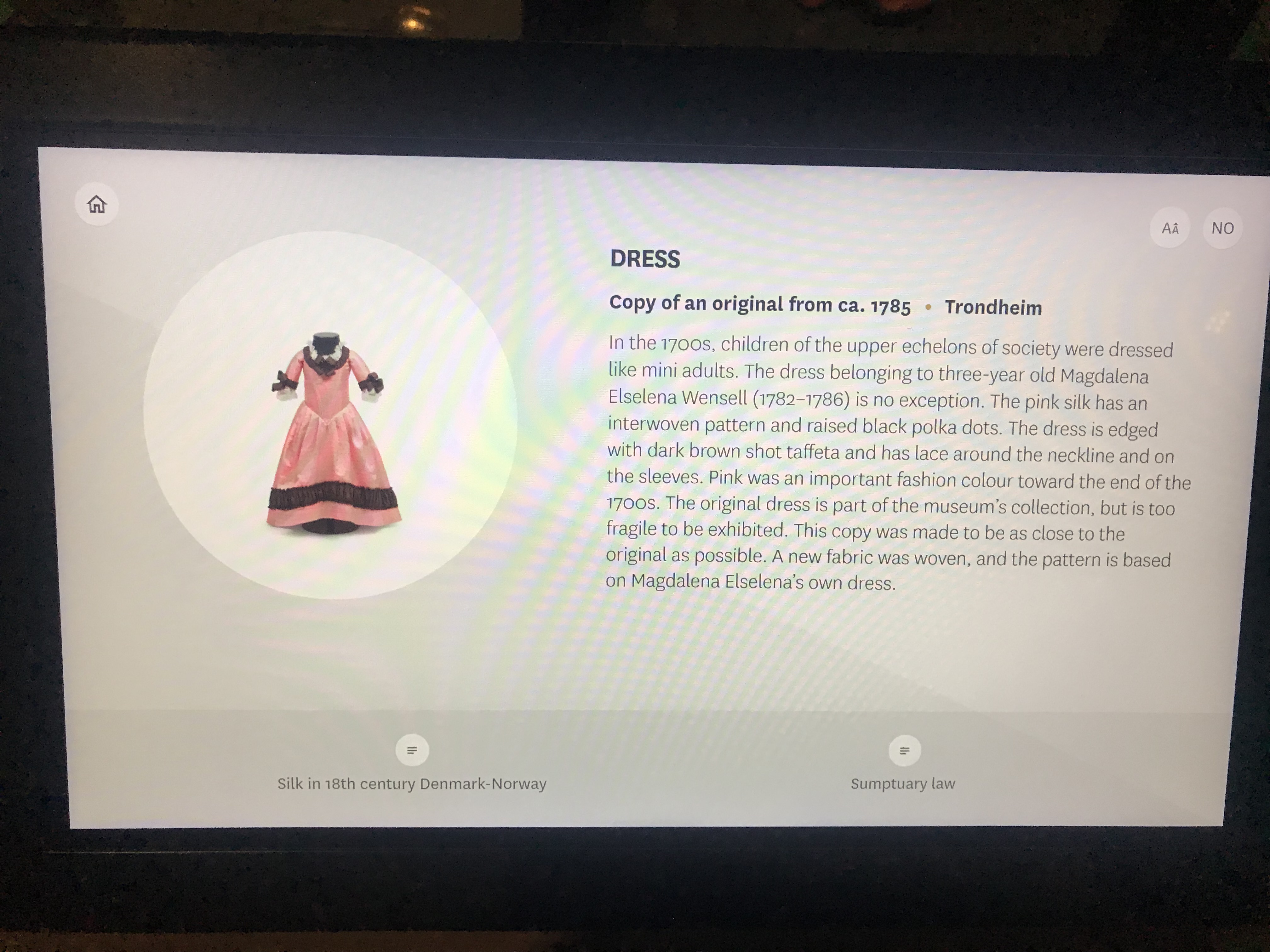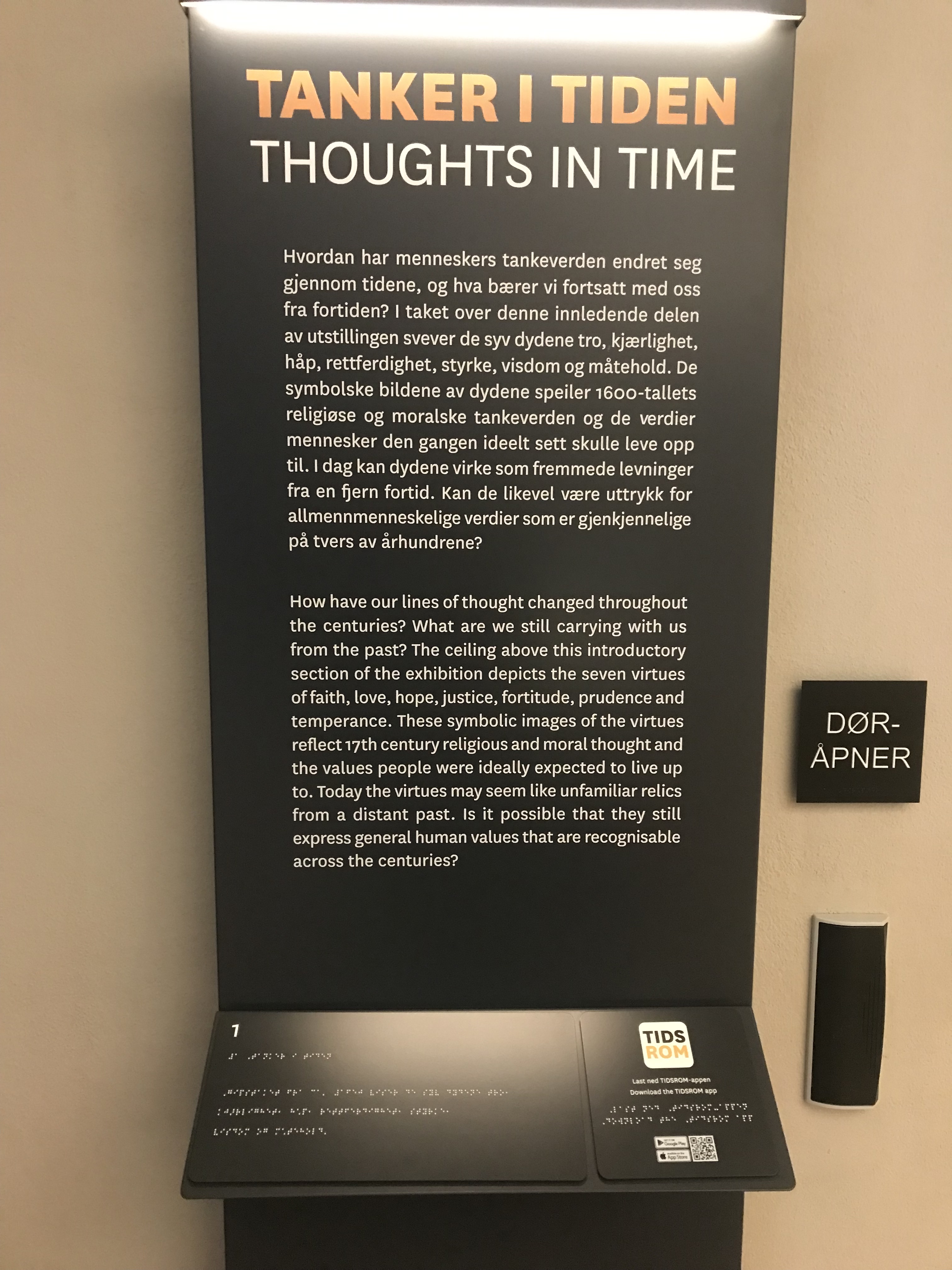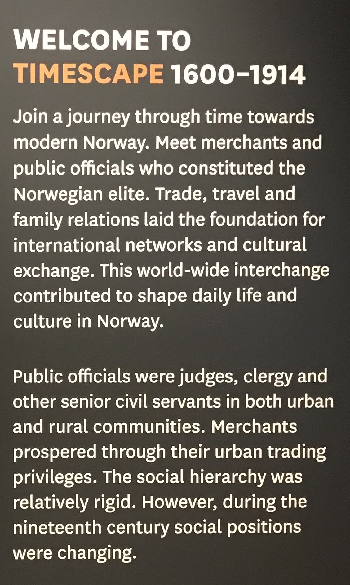 My next stop after the Norwegian Maritime Museum was the Norsk Folke Museum. To be honest I wasn’t expecting much but this place was incredible. So much to see and many exhibitions. I loved the introduction text to ‘Timescape’, although the rest of the exhibition did not really live up to its creative promise. In many ways it was not too different from an old-fashioned local museum display except that the material on display was stunning, everything was presented beautifully in top quality display cases making it just a joy to wander around. The digital labelling was a bit annoying because as a user you don’t read them unless really motivated. They also had these incredible displays of individual rooms from different periods that there real rooms from real homes.